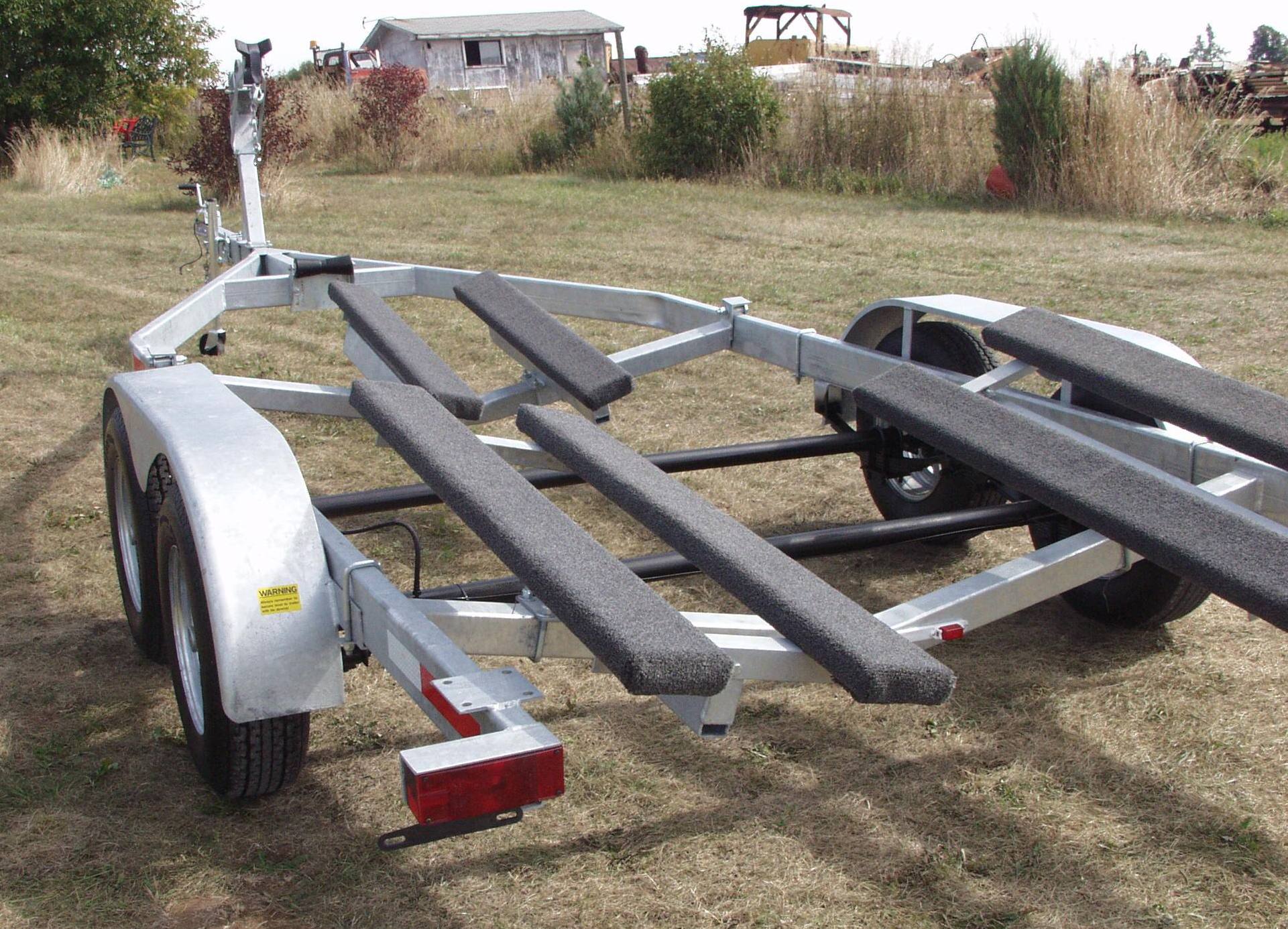 A ShipRight bunk trailer uses a four bunk system at the rear of the trailer. This dramatically increase the stability of the boat when trailering over rough or winding roads. As well, it provides more support for your craft during storage. This design works exceptionally well, especially for the larger class of boat.